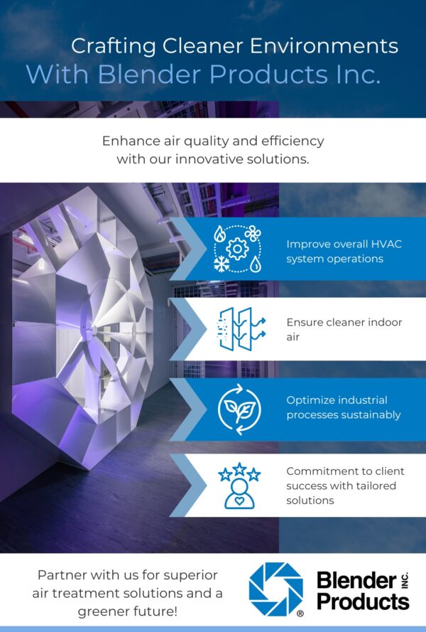 Join us at Blender Products Inc. in our mission to create healthier indoor environments and optimize industrial processes. Contact our team today to learn more about our air treatment innovations and technologies and engineered solutions. Together, let’s build a better, cleaner future for all.